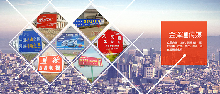 合肥金驛道廣告有限公司作為安徽省專營全國墻體廣告制作發布業務的一線品牌傳播公司---,10多年的運作經驗沉淀和積累及優化管理,不斷創新超越自我、發展壯大!目前組織管理幾十支訓練有素、經驗豐富的專業墻體廣告施工隊伍,秉承高品質服務、規模化的發展宗旨,立足安徽、江蘇、湖北3省,輻射河南、江西、浙江、湖北、山東等周遍省份,主要負責安徽墻體廣告,合肥墻體廣告,安徽墻體廣告,墻體噴繪等具備多省份同時大規模運作墻體廣告業...